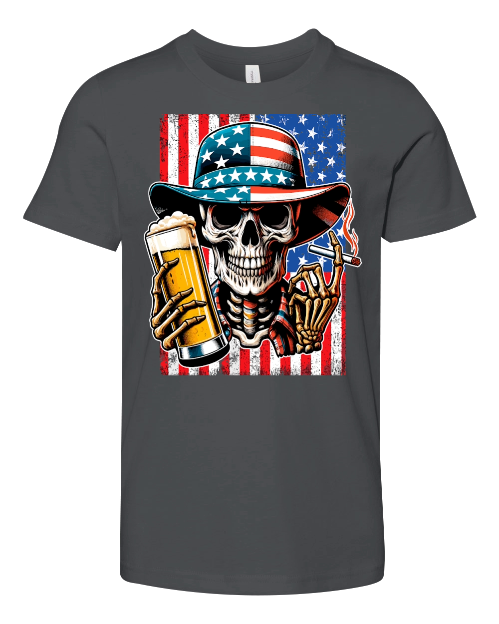 Shop USA Flag Vintage Skeleton 4th of july 32 Youth Unisex Jersey Tee custom made just for you. Available on many styles, sizes, and colors.