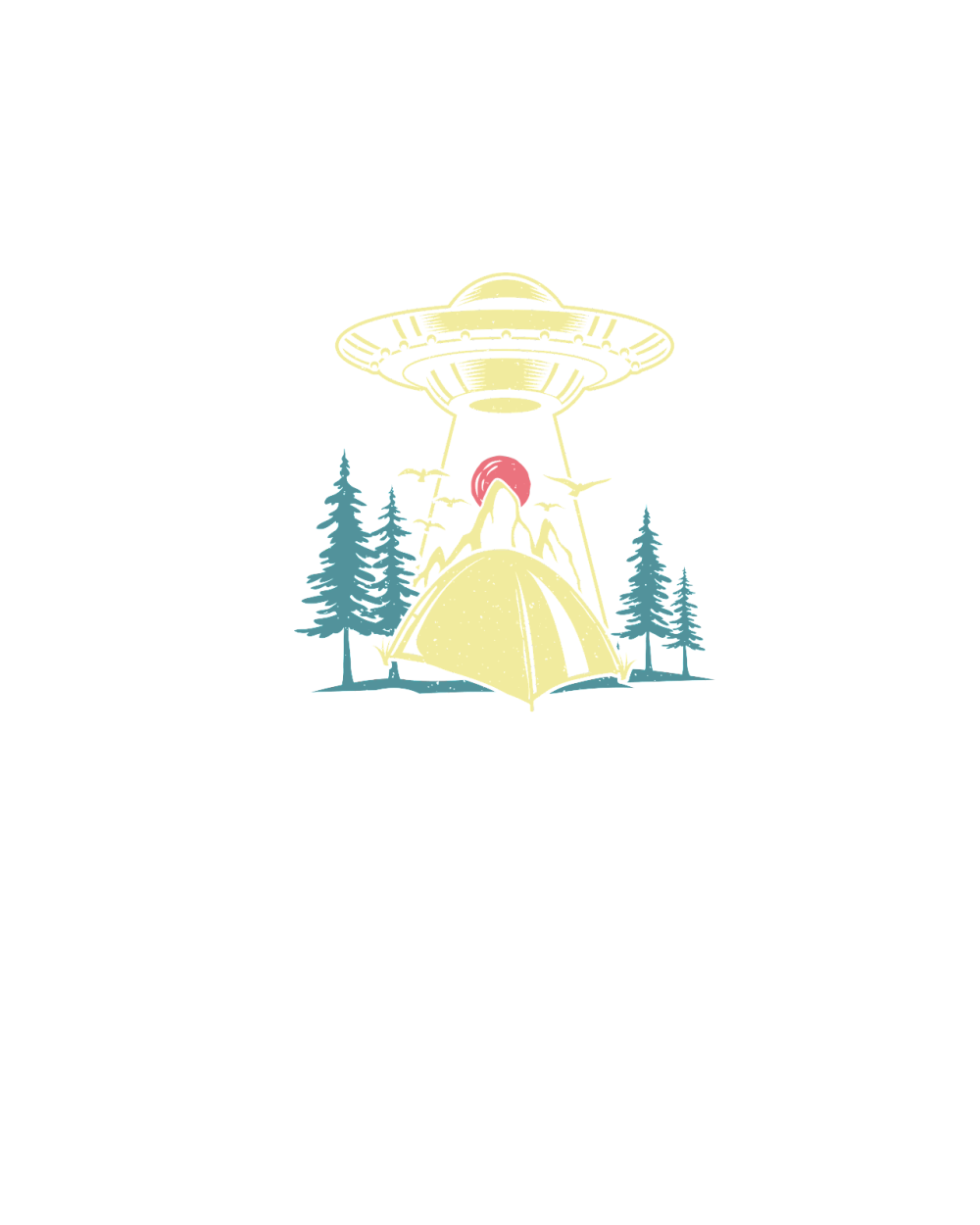 Vintage UFO Alien camping mountain