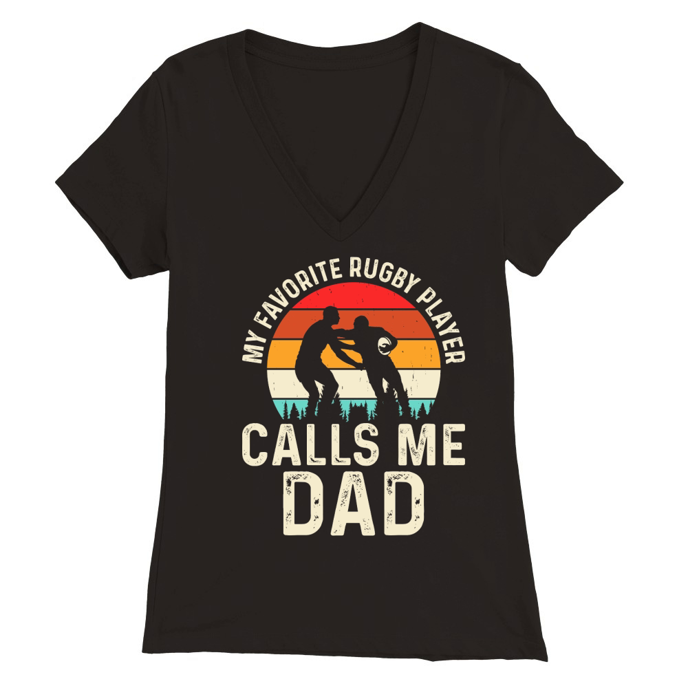 Shop My favorite rugby player calls me dad Premium Womens V-Neck T-shirt custom made just for you. Available on many styles, sizes, and colors.