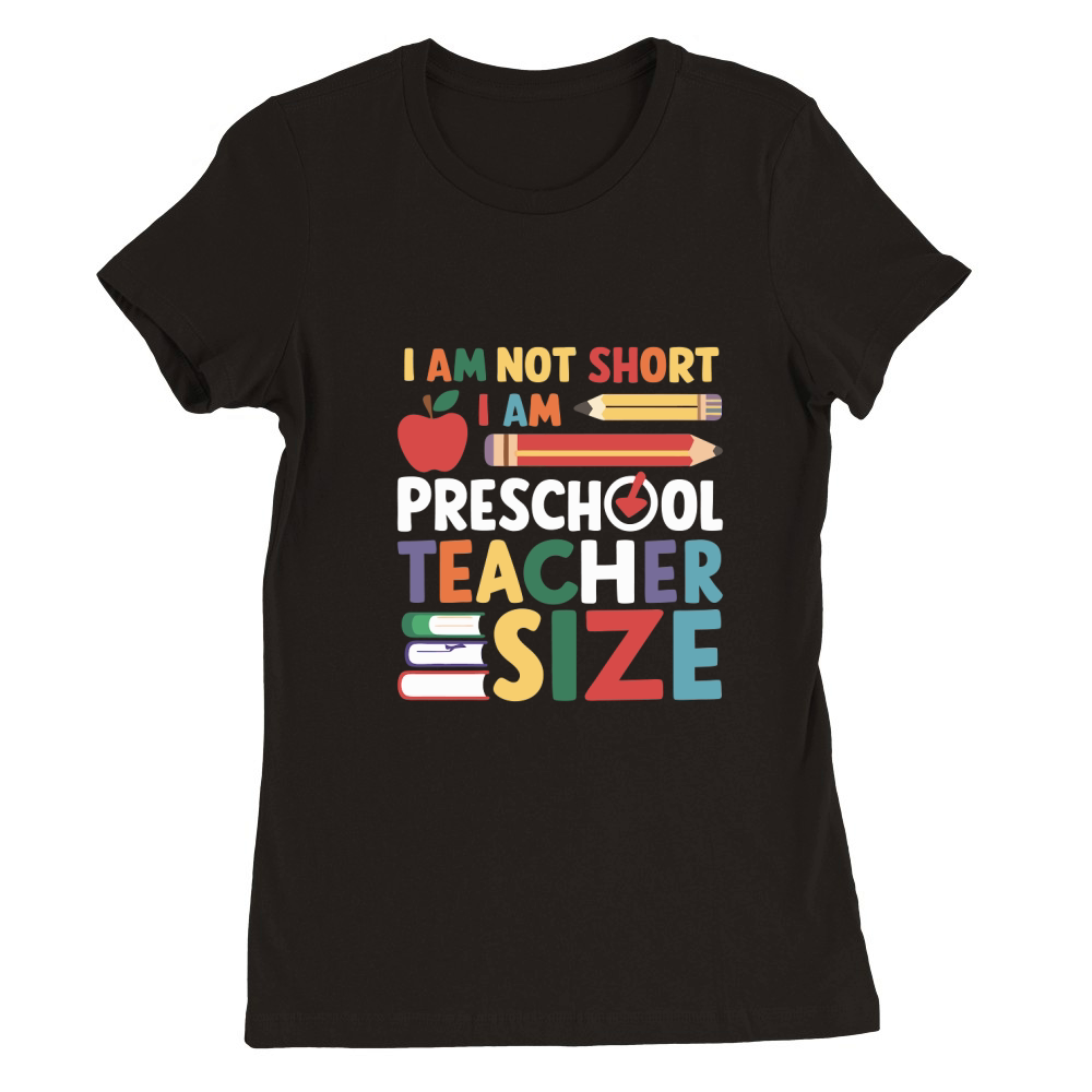 Shop I AM NOT SHORT I AM PRESCHOOL TEACHER SIZE Premium Womens Crewneck T-shirt custom made just for you. Available on many styles, sizes, and colors.