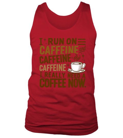 Shop I Run on Caffeine Caffeine I Really Need A Coffee Now Tank Top Unisex custom made just for you. Available on many styles, sizes, and colors.