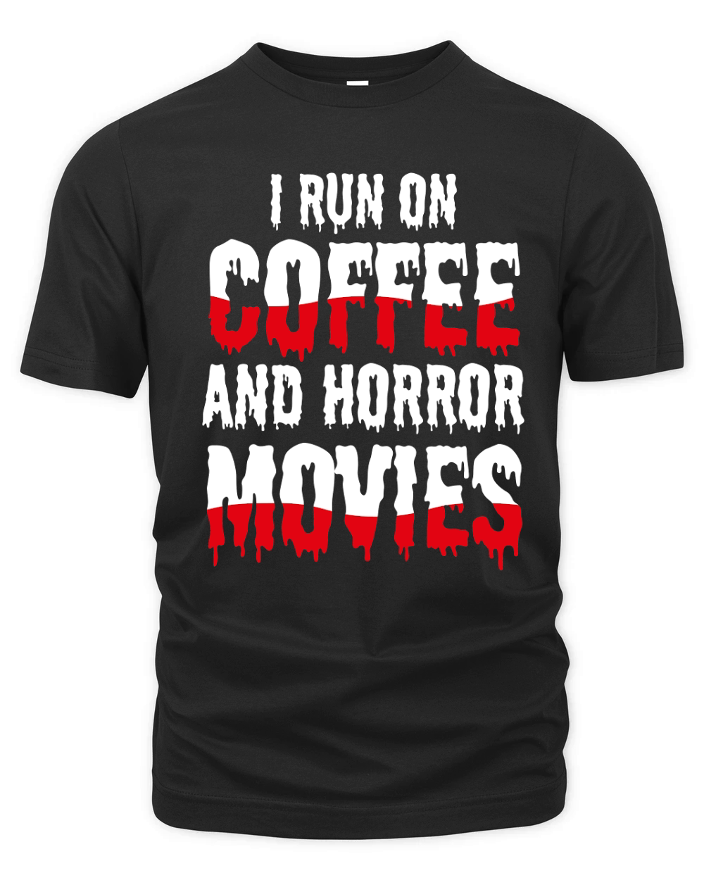 Shop I run on coffef and horror movies Organic Unisex T-shirt custom made just for you. Available on many styles, sizes, and colors.