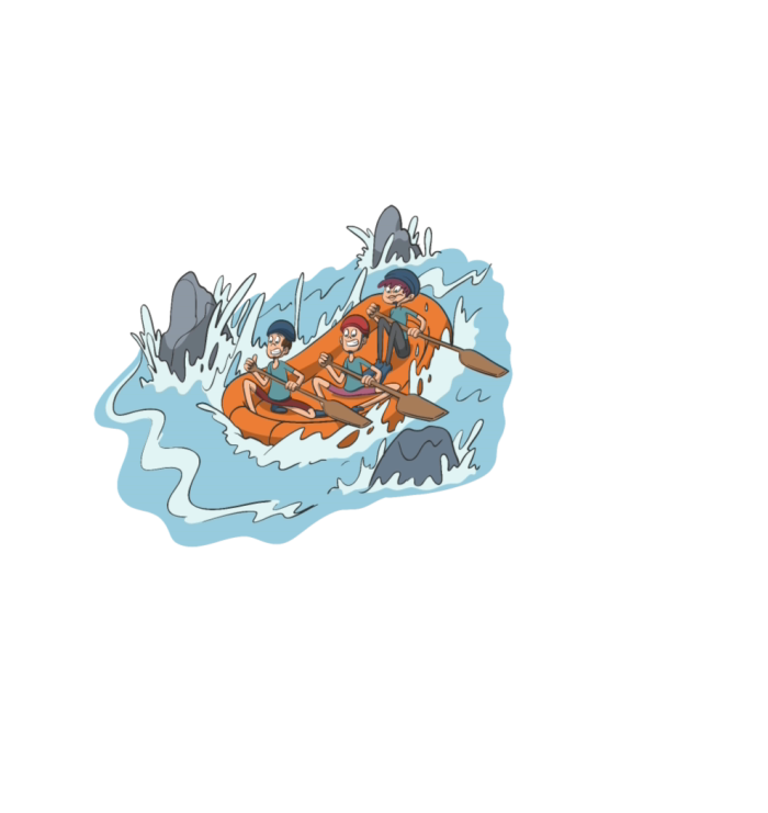 White water rafting through spray and rocks