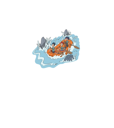 White water rafting through spray and rocks