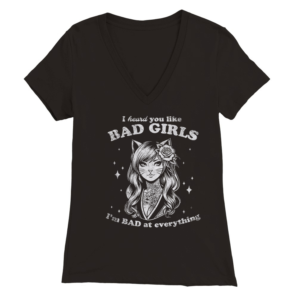 Shop Cat Girl I Heard You Like Bad Girls D White GR2 Premium Womens V-Neck T-shirt custom made just for you. Available on many styles, sizes, and colors.