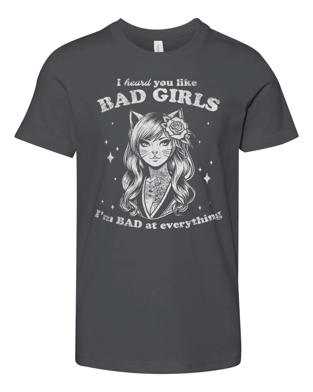 Shop Cat Girl I Heard You Like Bad Girls D White GR2 Youth Unisex Jersey Tee custom made just for you. Available on many styles, sizes, and colors.