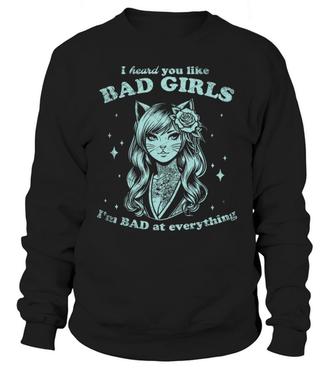 Shop Cat Girl I Heard You Like Bad Girls D Green GR Sweatshirt Unisex custom made just for you. Available on many styles, sizes, and colors.