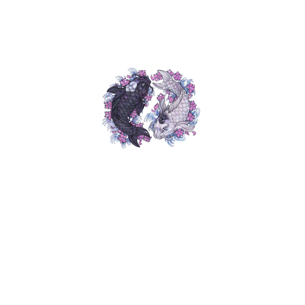 Yin Yang Koi Fish with sakura flowers