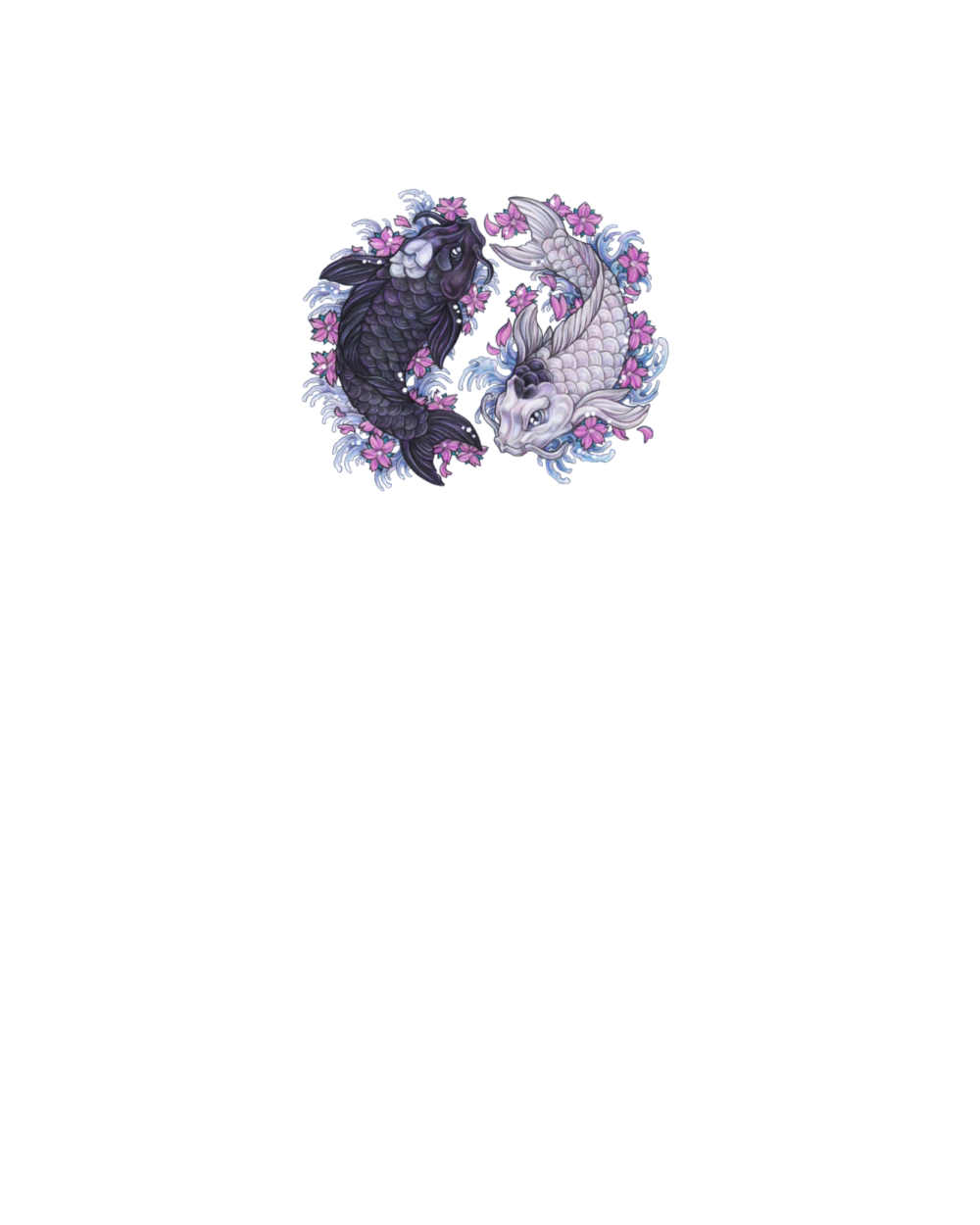 Yin Yang Koi Fish with sakura flowers
