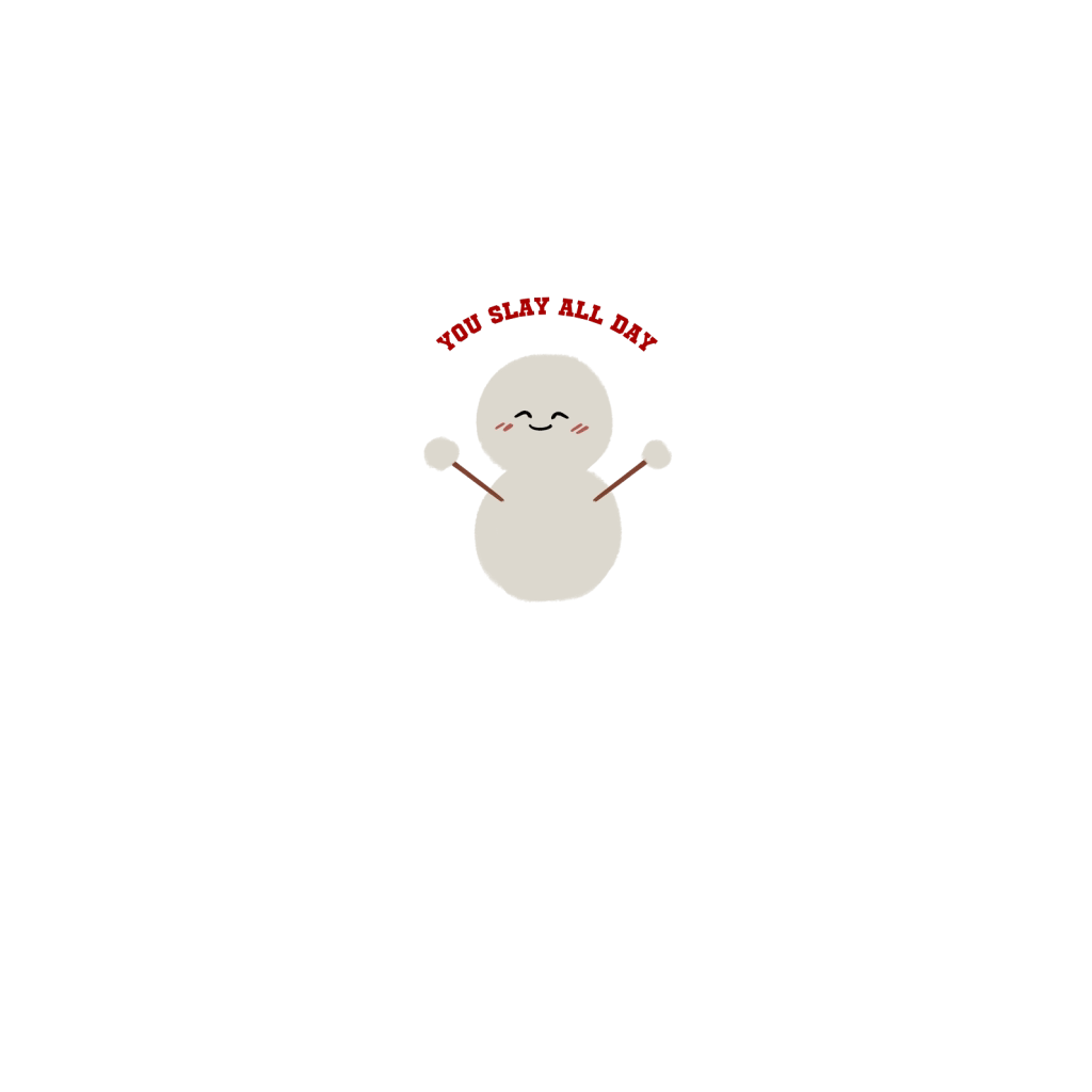 You Slay All Day snowman has a cute smiling face